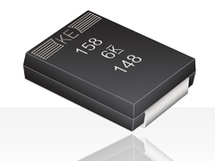 The KEMET Organic Capacitor is a tantalum capacitor with a Ta anode and Ta2O5 dielectric. A conductive organic polymer replaces the traditionally used MnO2 as the cathode plate of the capacitor. This results in very low ESR and improved capacitance retention at high frequency. The polymer technology also exhibits a benign failure mode which eliminates the ignition failures that can occur in standard MnO2 tantalum types. Ta polymers may be operated at voltages up to 90% of rated voltage for part types with rated voltages of ≤ 10 volts and up to 80% of rated voltage for part types > 10 volts with equivalent or better reliability than traditional MnO2 tantalum capacitors operated at 50% of rated voltage.