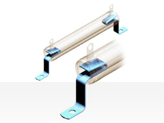 Sturdy plated steel brackets, along with thru-bolts, centering washers and insulating washers (included), allow for secure mounting of 210 type and 270 type resistors. Mounting brackets are available in either slotted (one with end-slot/one with side-slot) or elongated styles.