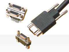 This commercial line of shielded Micro-D products offers an economical solution for commercial applications that require the density of a microminiature connector. The right angle plugs are a rugged commercial design with a metal interface and grounding tabs for improved mechanical and electrical shield conditions.